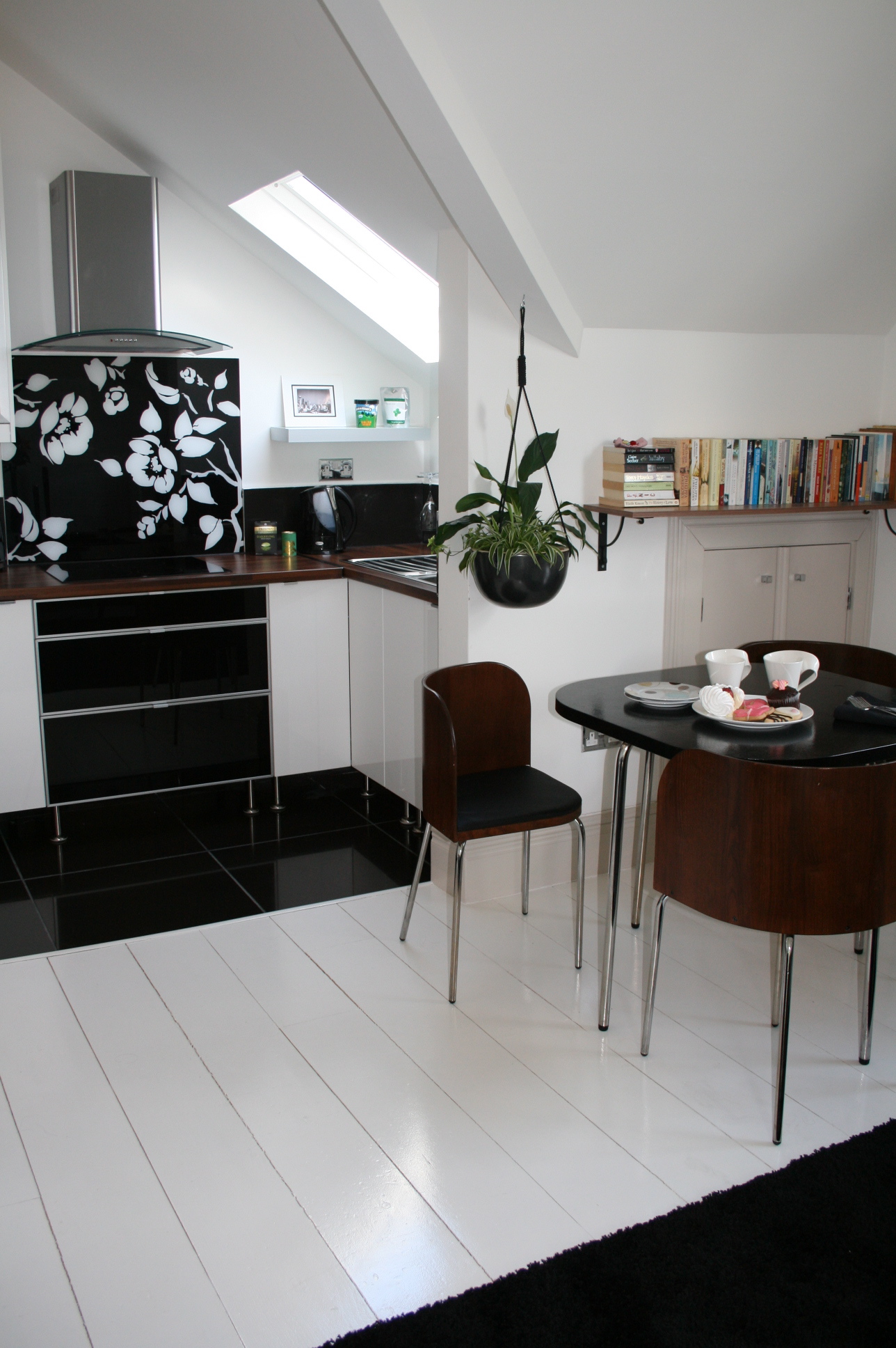 The floorboards are varnished now, and you can see from earlier pics the difference a decent varnish gives. It is well worth paying for a good varnish, and is false economy not to. I’ve used Diamond Flooring varnish by Ronseal, and when you’ve spent time painting floor white, the last thing you want is it to be unprotected by a cheap lacquer.