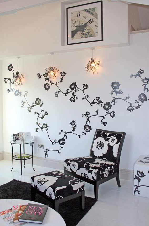 Design: Ikea wall stickers in Project Monochrome living room Monochrome living room using Ikea stickers on the wall Wide of the monochrome living room, Ikea flower stickers, Coach House chair, Tord Boonjie Garland lights Share this:TweetMore Click to share on Reddit (Opens in new window) Reddit Share on TumblrLike Loading... Leave a comment Cancel reply Δ