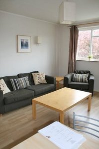 And suddenly, the room was transformed, I was delighted with it. Blitzed the Ikea tables with gloss, new lights instead of the papery student ones, new hanging panels at the windows and a zippy Ikea print on the wall. Lo and behold the very next day, two lots of tenants fighting over it. Result.