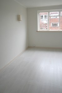 So a Sian stylee makeover was needed, starting with the floor. Inspired by the gorgeous brilliant white floor in Project Cathedral, but lacking the new extra wide pine boards, a little experiment has been carried out. Laminate lightly sanded, oil based primer sponge-rollered on (don’t use brushes as they leave lines and hairs), then get rid of all the dust and close all the windows, cause heaven only knows where all the dust, insects and bits of fluff come from.