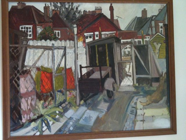 This is a picture which is hanging in the flat, it’s big, say 80cm x 60cm, with pride of place in the living room. I can honestly say that I have never before seen an oil painting of a back yard, a trailer and a shed.