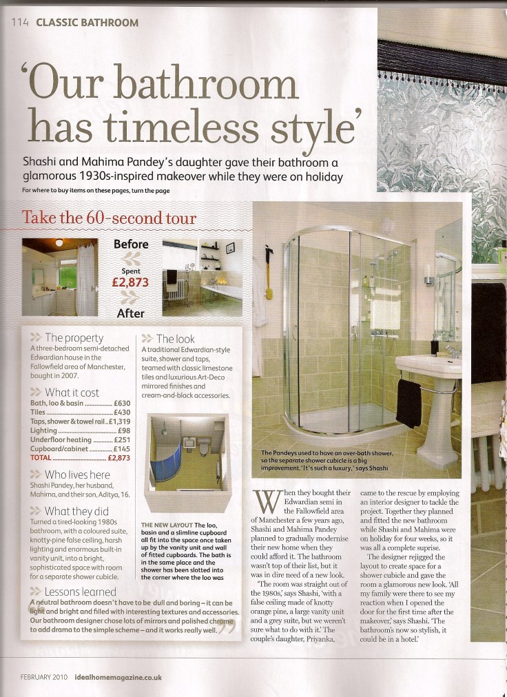 Our Chanel / Jo Malone liner luxury bathroom is featured in February’s Ideal Home magazine, and is looking goooooood 🙂