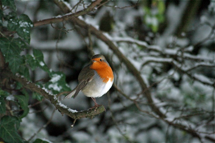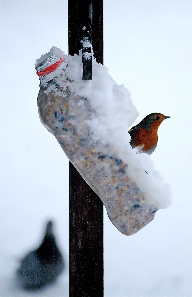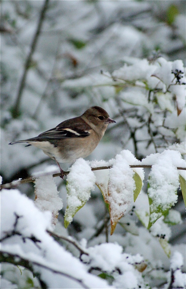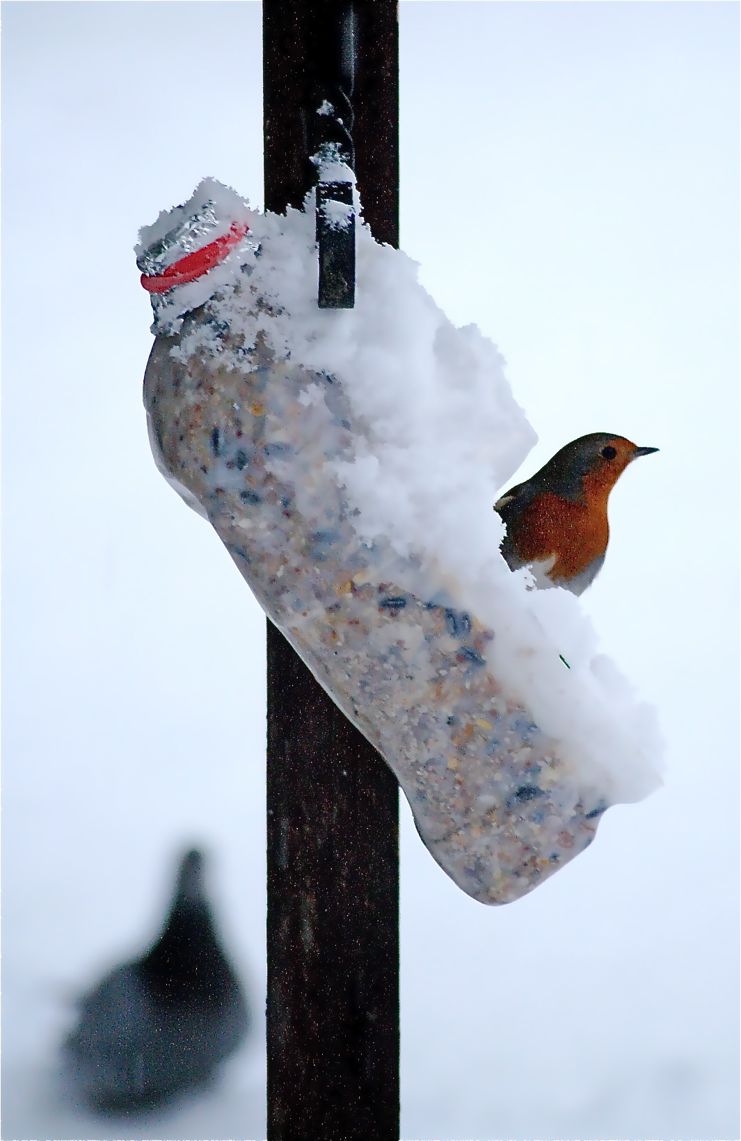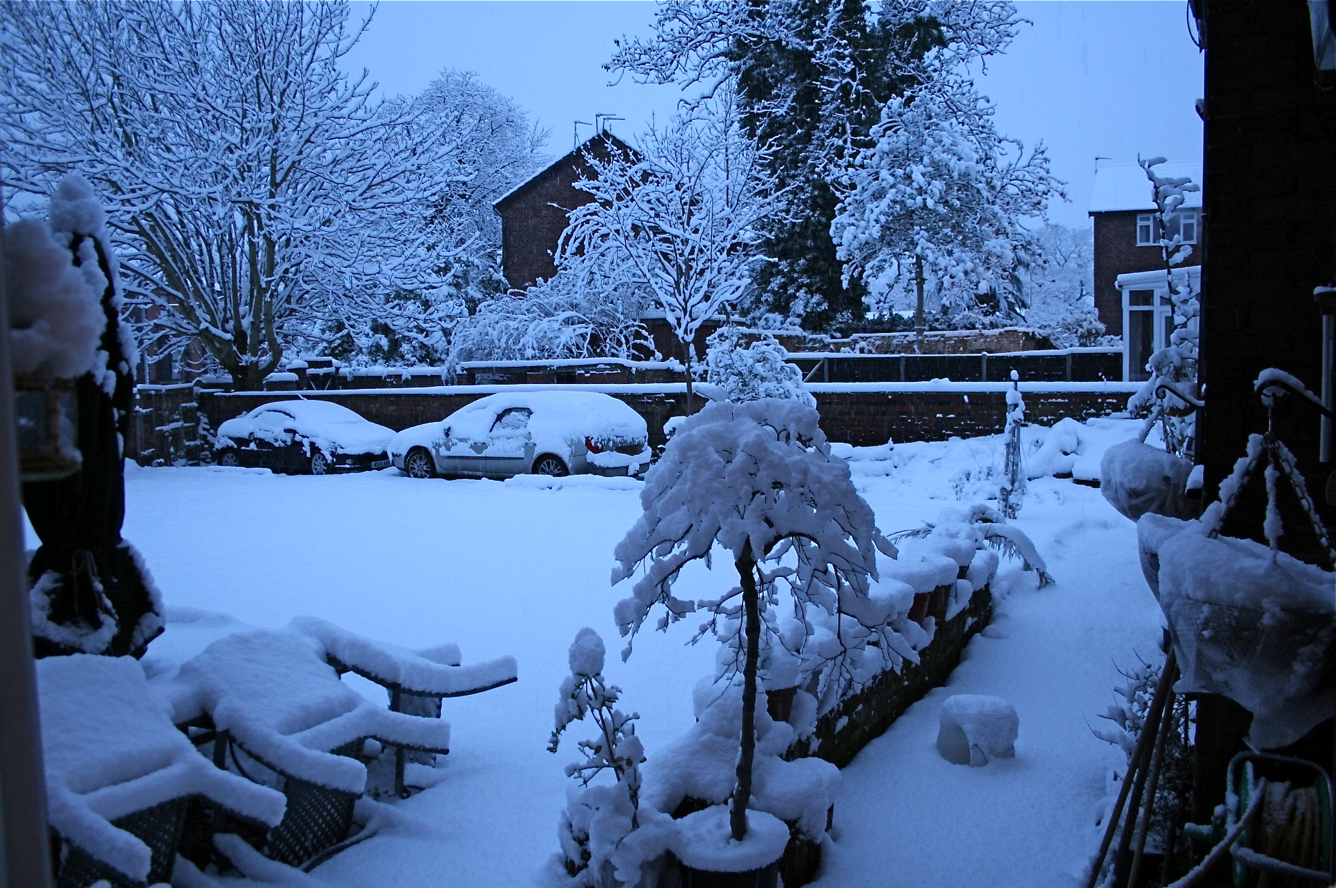 Morning dawns over the snowy garden and guess who's first up, my cocky robin redbreastHis partner in crime striking a pose and puffing up his pecs for my cameraOne leg and head inside the feeder, get the impression it's hungry?Not a usual visitor to my garden, this lady chaffinch had clearly heard on the grapevine there was a free feast laid outMy pots looking strangely like frosted cupcakesQuick trip out for bread and the streets around Fallowfield were treacherous, deserted and wonderfulErrrrrr, I don't think so 🙂A nice bit of shelterI really must paint that shabby chic gate, it only looks pretty in the snow!Vine = shellshocked, may not get any grapes this year.....Mart - "You coming out for an invigorating walk, Mia?" Mia, whose neck was thoroughly wound in: "Are you kidding me, you ridiculous man?"