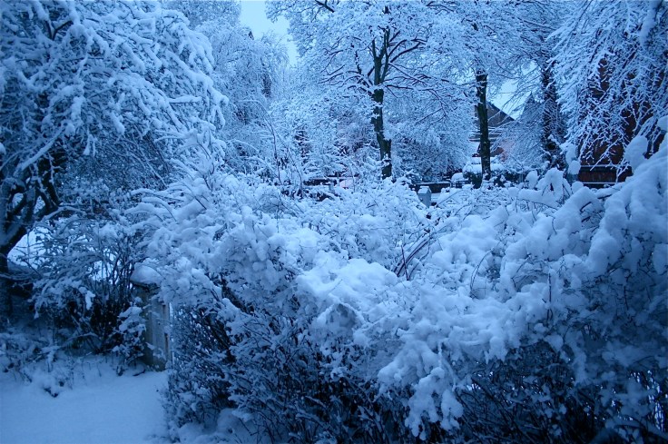 Kinda spooky first thing, still and silent in the gardenBranches heavy with snow, almost touching the floor, very cool