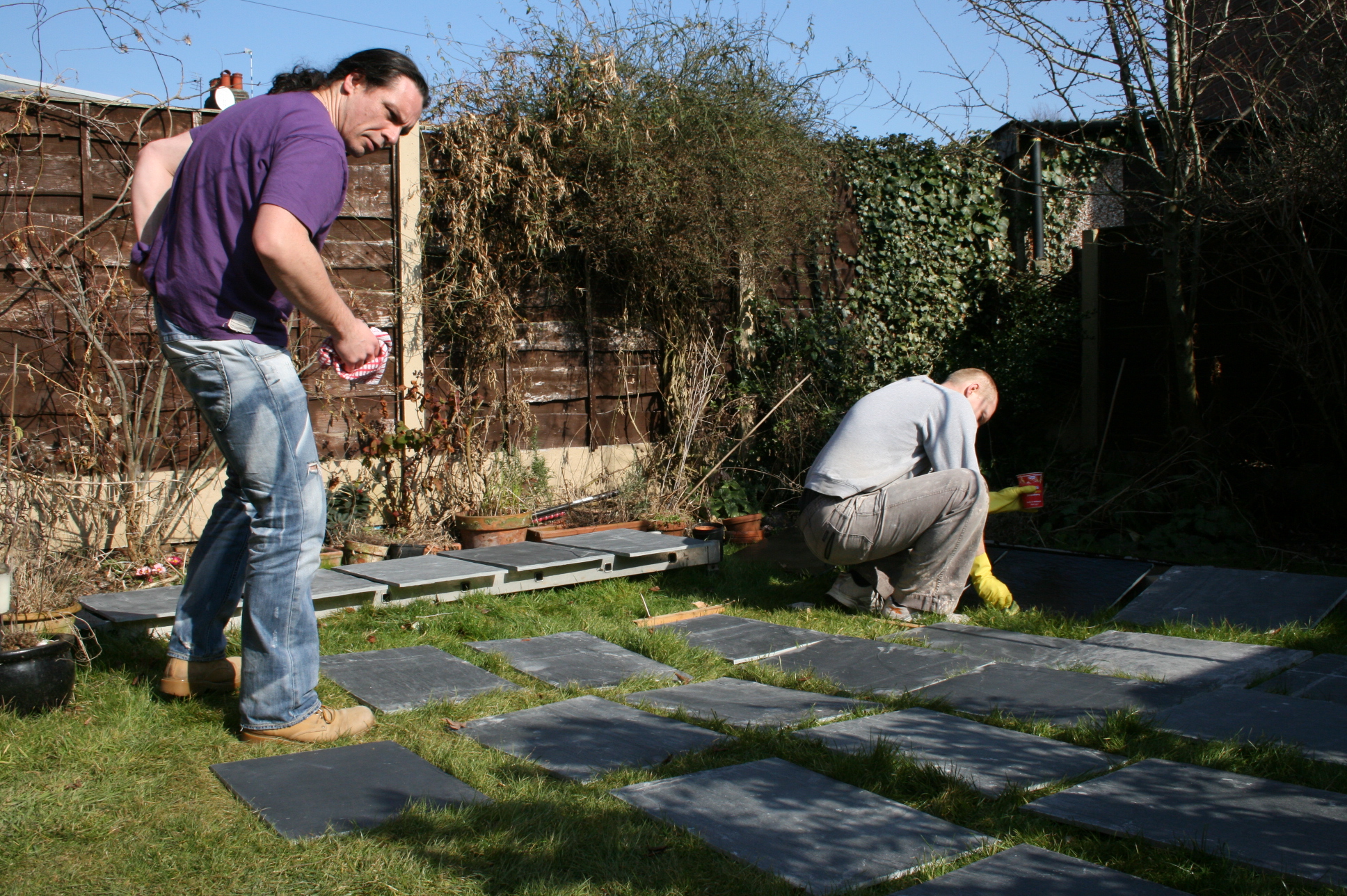 One of the tasks was to get the flooring to site for Helen and Stuart’s kitchen at Belford and this week’s fabulous sunshine allowed us to get the slate seal on before the tiles were laid – always preferable, but not always possible. Spreading out the tiles like this before they are laid also allows you to hand pick the tiles most full of personality, the ones with lovely ridges or patterns, and lay those in the most prominent areas of the floor. Some people want the plainest tiles, but most are picking slate for a reason, because it’s a natural product with all the beauty given by nature’s imperfections.