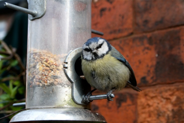 Bit concerned about this week’s visitor to the garden! The picture looks zoomed in, but I was only about 20cm away from this little blue tit who has taken up residence on the bird feeder and refuses to leave. He can’t fly very well at all and just kind of swoops in a bumble bee fashion up and down through the air from the tree opposite to the feeder then back again, missing every so often and clinging to the wall. All day back and forth and he lets you stand right next to him, it’s very weird. I’ve spoken to the RSPB and they say there’s little they can do with an injured blue tit, it’d be cruel to cage him and that a vet would just put him to sleep. So, we’ve wedged a bird house in the tree for shelter and left him to his own devices, though I’m a bit worried as it’s a rainy, blowy night outside.
