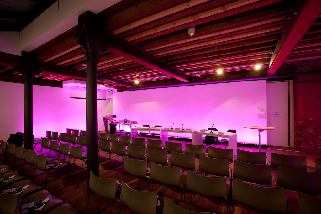 The basement Cube space where the debate was held