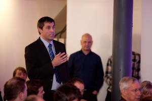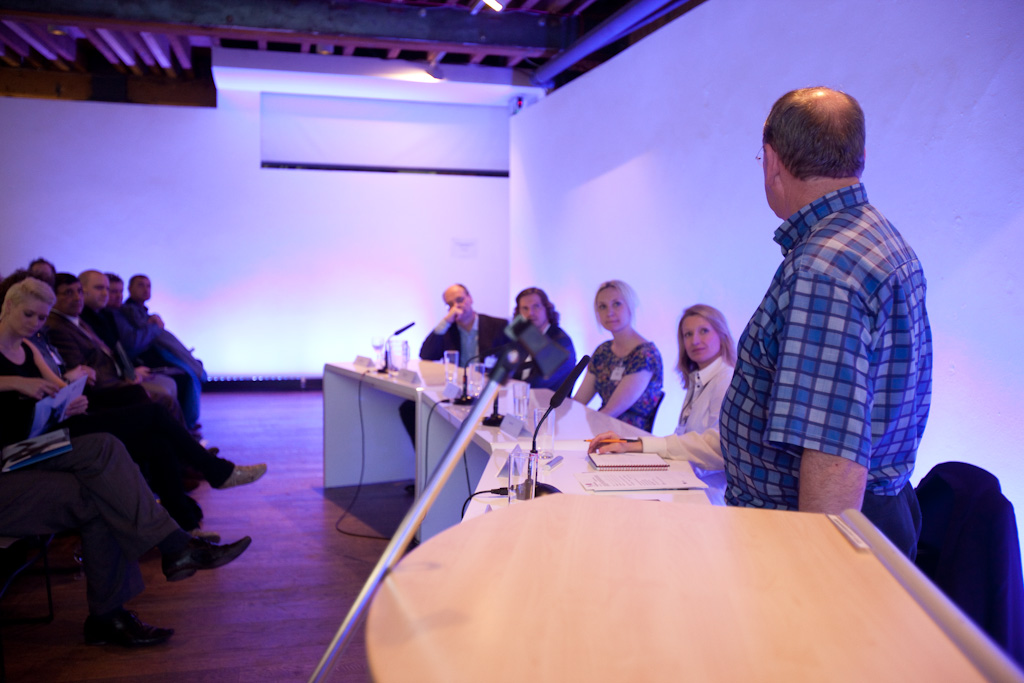 Lots of people spoke and there were some quite heated discussions! The man with his hand raised above (sorry, I don’t know his name!) talked about his work at Manchester University involved specifying LEDs for the student halls of residence and this sparked off a discussions about EPC’s and also the fact that it’s all very well when those specifying highly priced LED lighting are also the ones making the long term savings, as with the University paying more for upfront LED installation, proving their ‘green’ and environmentally friendly credentials, because they are also the ones recouping their initial spend as they are footing the electricity bills on the halls. In the same way homeowners planning on staying in their homes for many years can make lighting investments as they will be the ones enjoying the savings and therefore cancelling out the initial spend. But for developers or landlords currently looking to make financial savings, the initial lighting investment can’t easily be added on to the purchase price or the rent, and as it’s the tenants who pay the bills and therefore make the savings, the decision isn’t therefore made to invest in green lighting (this is my default position).