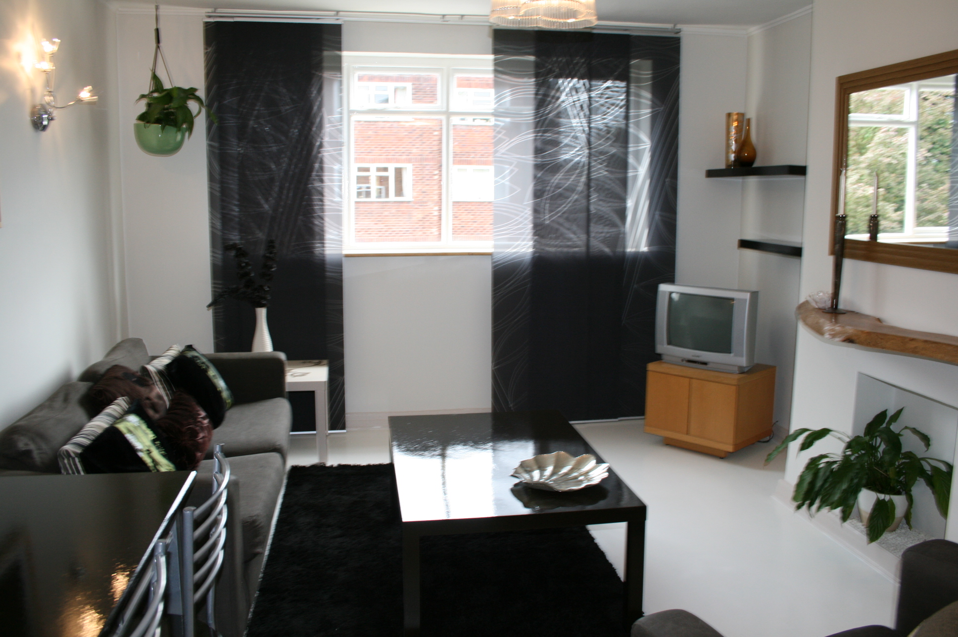 They did attempt to wash the sofa covers however these were dry clean only and fell apart, so I’ve had to have a re-think in the living room and bring a sofa and chairs from another flat where these items had never been perfect. To be frank they never will be perfect, ’cause they’re a wee bit old fashioned for the Moregeous style but at the moment costs must be cut, so they’ll have to suffice. I was going to get the old Habitat sofa and chair recovered for this flat, but there’s no time, so I’ll do that for Project Squeeze when it’s nearly ready and pick a new funky fabric.