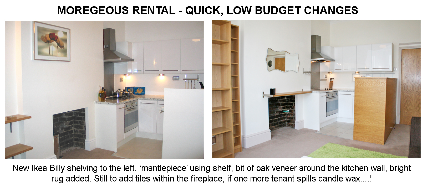 Never under-estimate to power of a coloured rug and a sparkly light, it rented within hours of us making the changes below: