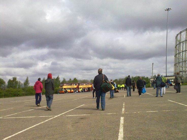 This was a picture taken on the day of the shoot by a sneaky camera phone, with all the pervy men heading for the buses!