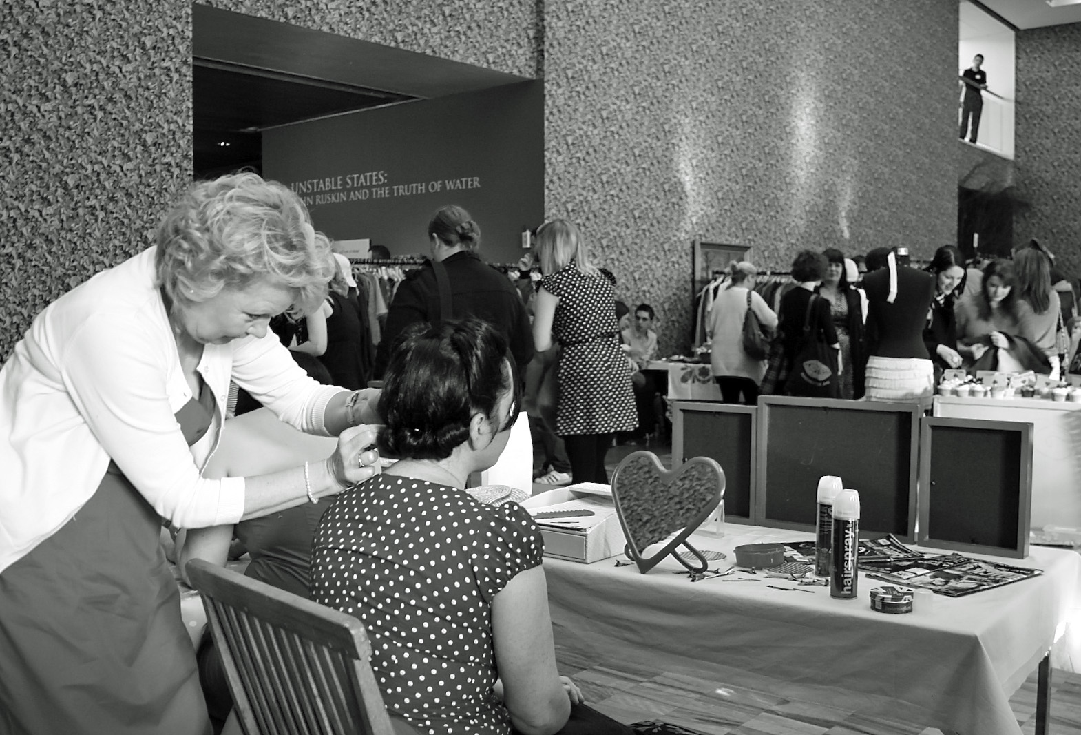 Cakes delivered, I scooted off to the Whitworth, an art gallery near Manchester city centre which was hosting a vintage fair for the afternoon. It wasn’t as big as the Fallowfield extravaganza earlier this year, but was still a rather pleasant way to spend a couple of hours, kinda wish I’d had time to get my hair, nails and make-up done like the girls below, looked like great fun: