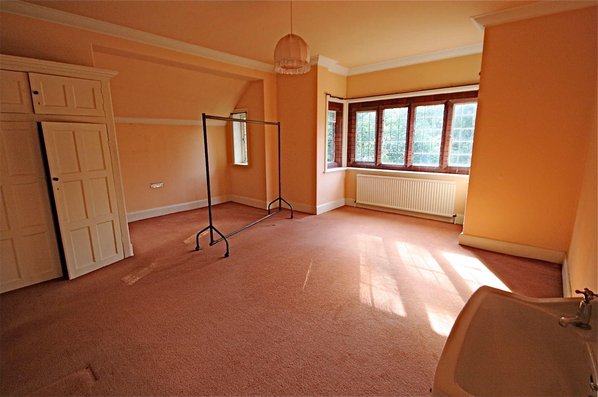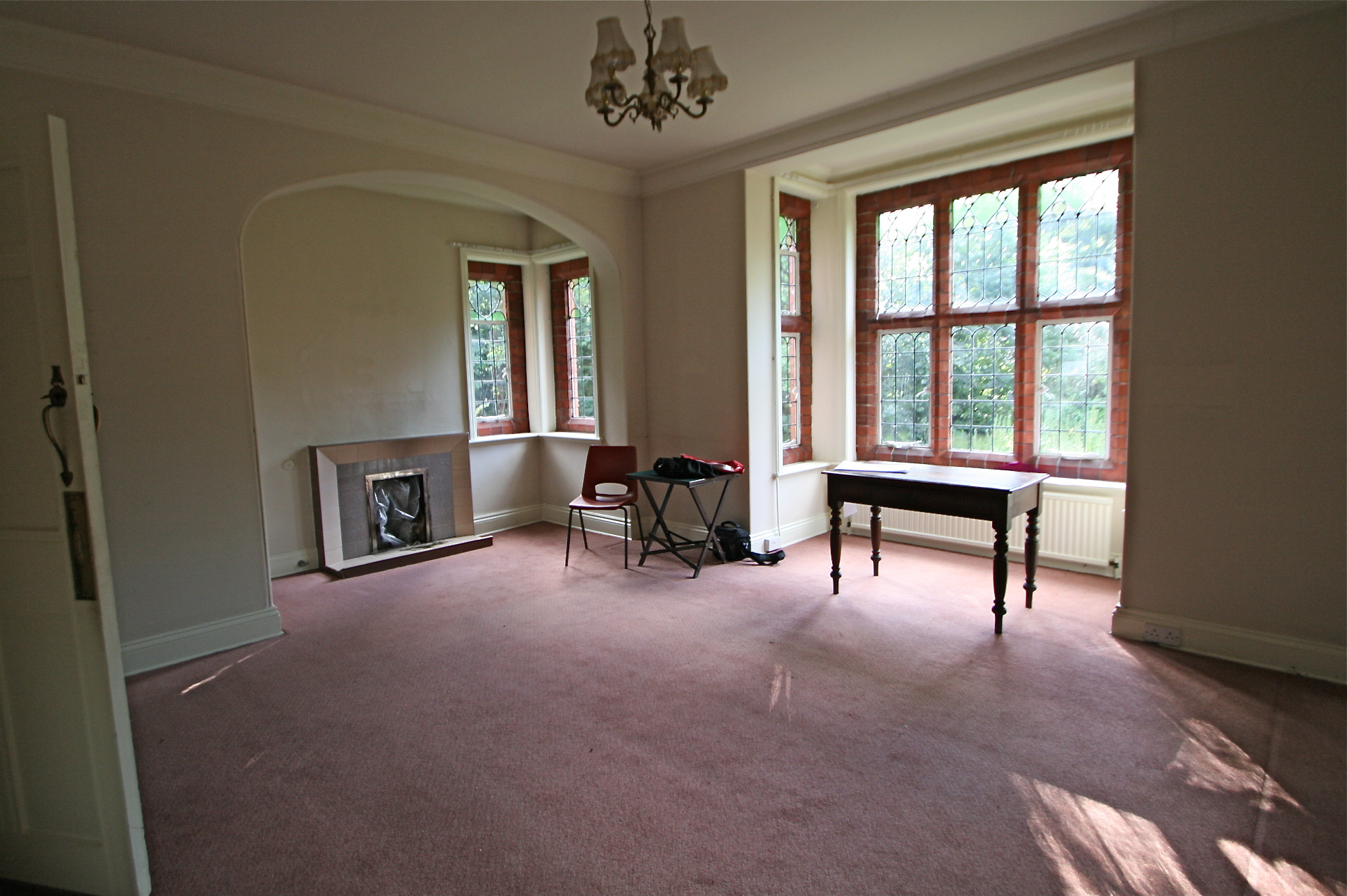 The main living room below looks out onto the garden with two bays and had a yucky 50’s fireplace which is now no more and is to be replaced by something a little more in keeping with the property. New radiators in here, more sockets, new lighting, carpets and redecorating. Huge cracks across the ceiling have also had to be repaired and the ceiling re-skimmed.