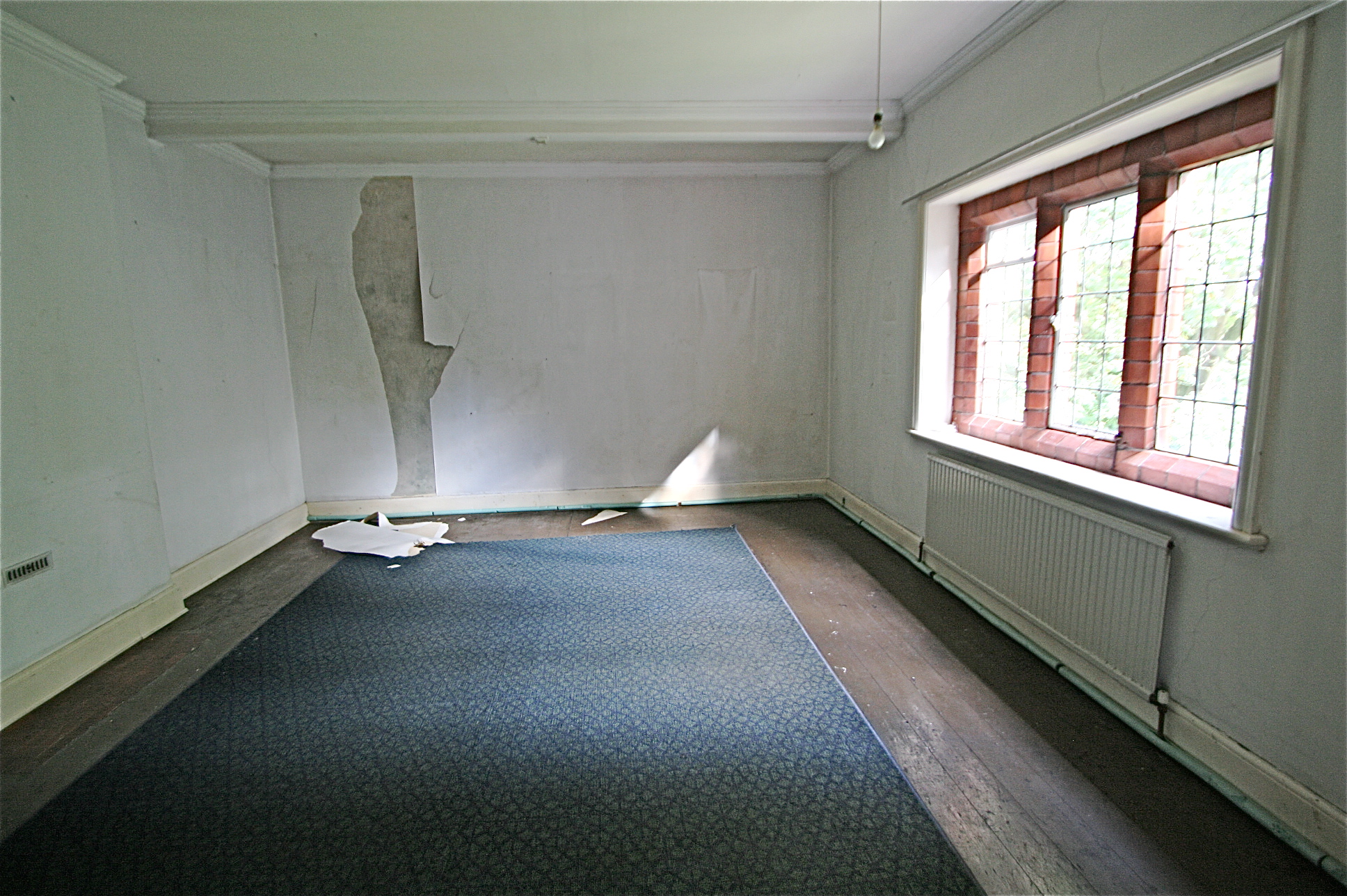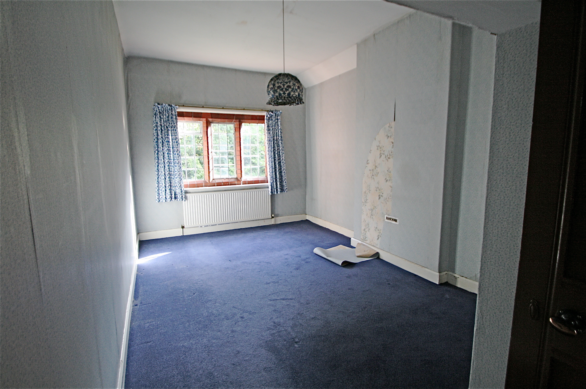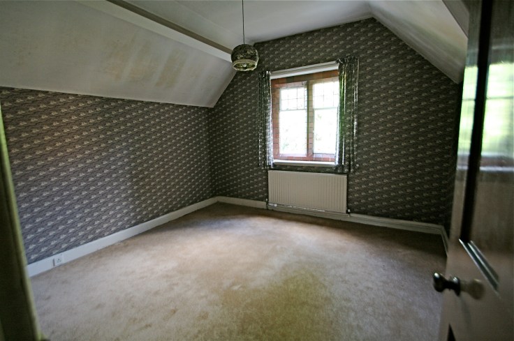 And finally, phewf, the top floor, and two MORE rooms, it’s never ending! Another bedroom which was a bit creepy, the sort of room you’d see in a horror movie we all thought and also a small box room. Both in the creepy room and the swan room, the walls around the chimney breast were sodden, indicating problems with the stack outside. Rotten joists, damaged plaster, a knackered window, scaffolding needed to get to the very high chimney outside, the Parsonage was definitely going to be a few months work, bigger than your average job, BooBoo.