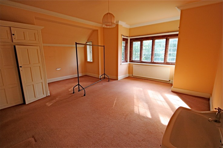 And so to the four main bedrooms; the master, the blue room, the peach room and the swan room, all named for reasons which become glaringly obvious when you look at the images. All have had their ceilings dropped and re-boarded as they are so large and have cracked and shrunk over the years. Poor Voytec ended up in A&E after being attacked by wasps from a huge nest above the master bedroom when the ceiling was pulled down, so glad I wasn’t on site that day. All to have new radiators, more sockets, new lighting and be neutralised in terms of the decor as the house is to be let when complete. That’s a bit of a shame in the swan room, I liked it’s quirkiness, but not so much in the peach room which made everyone feel a bit queasy, I just kept hearing Joanna Lumley’s voice as James’s evil auntie.