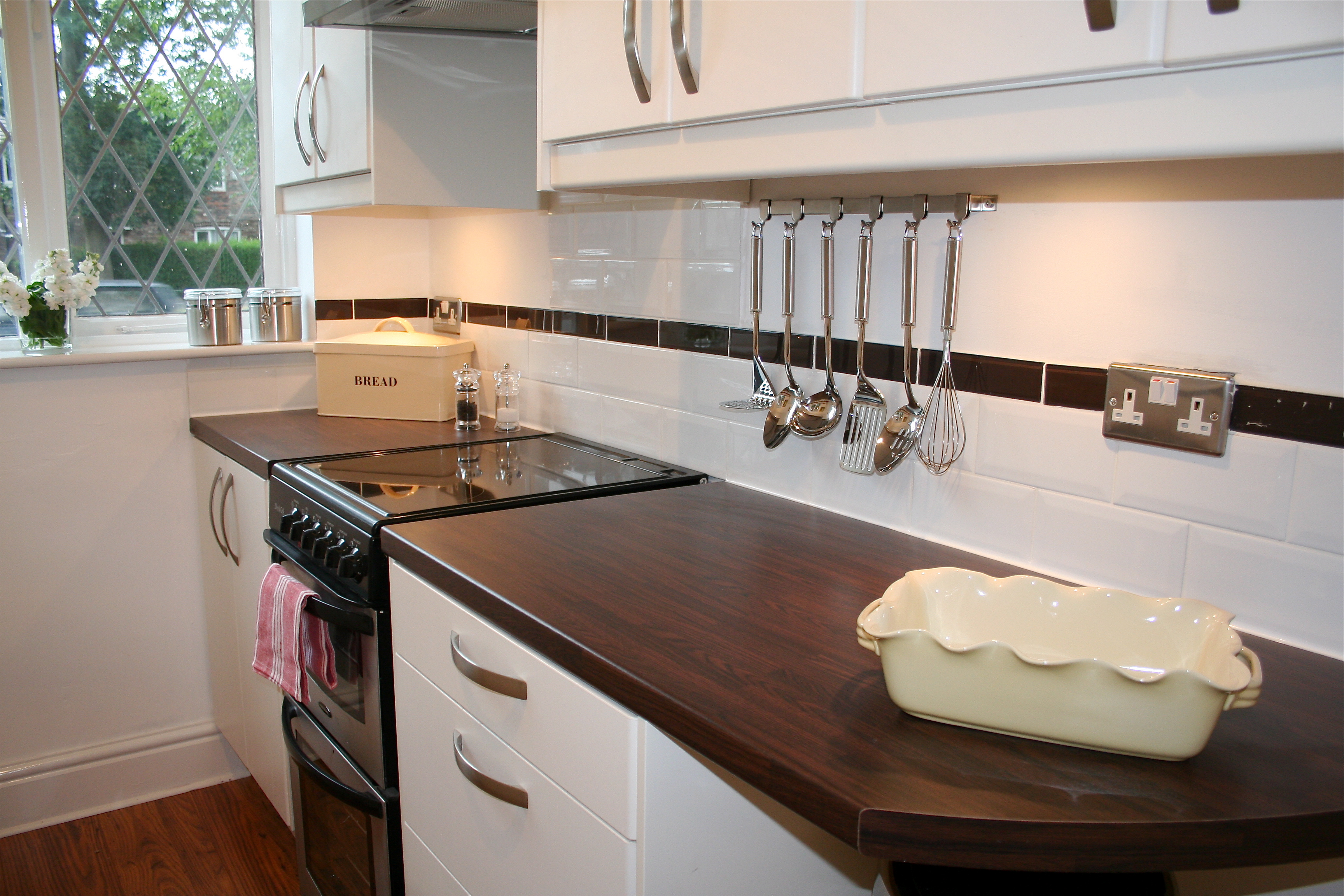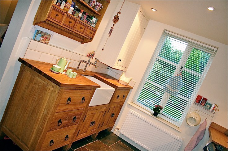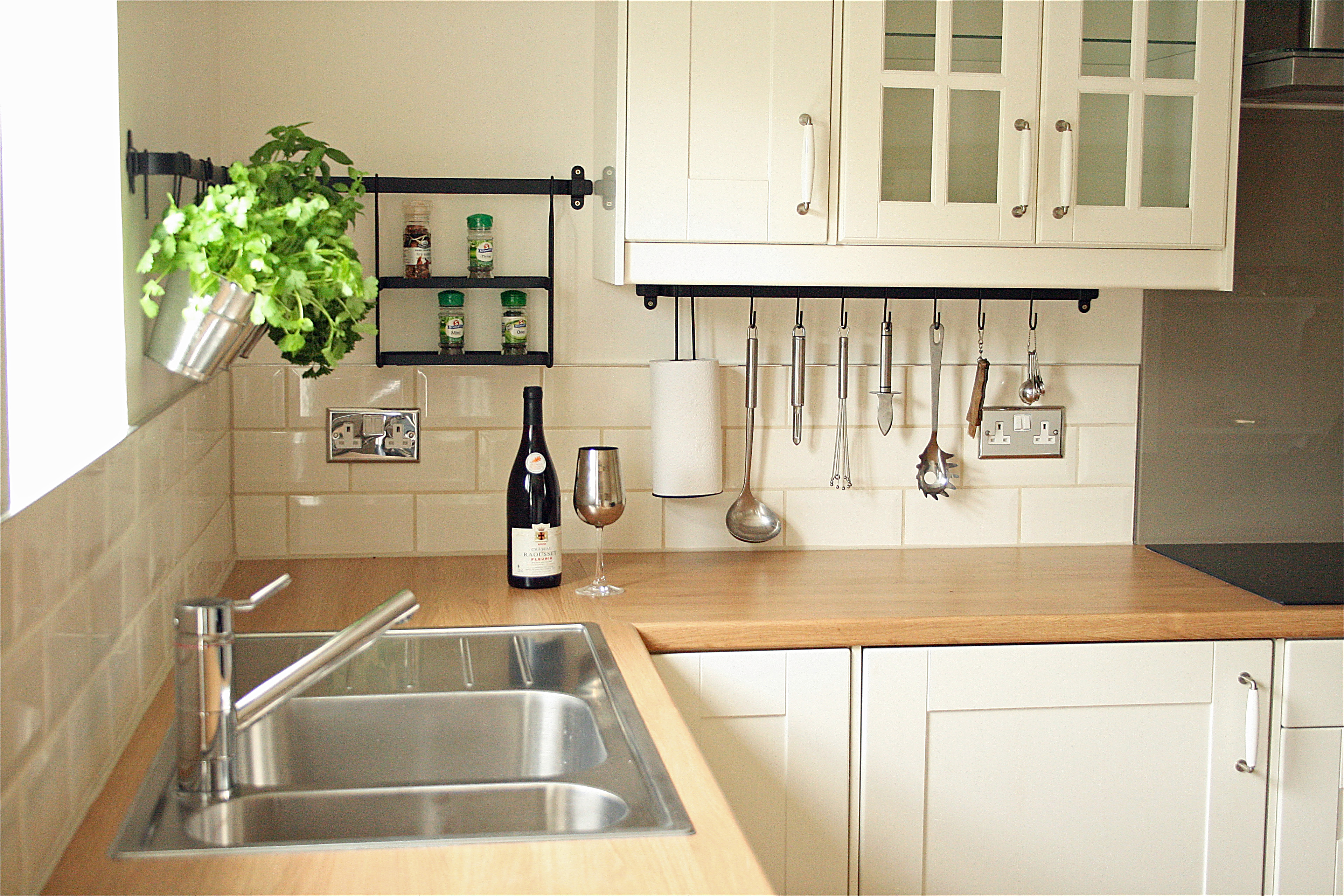 Again just recently at Project Squeeze, though this time with cream tiling for a cream Ikea kitchen and oak laminate worktop: