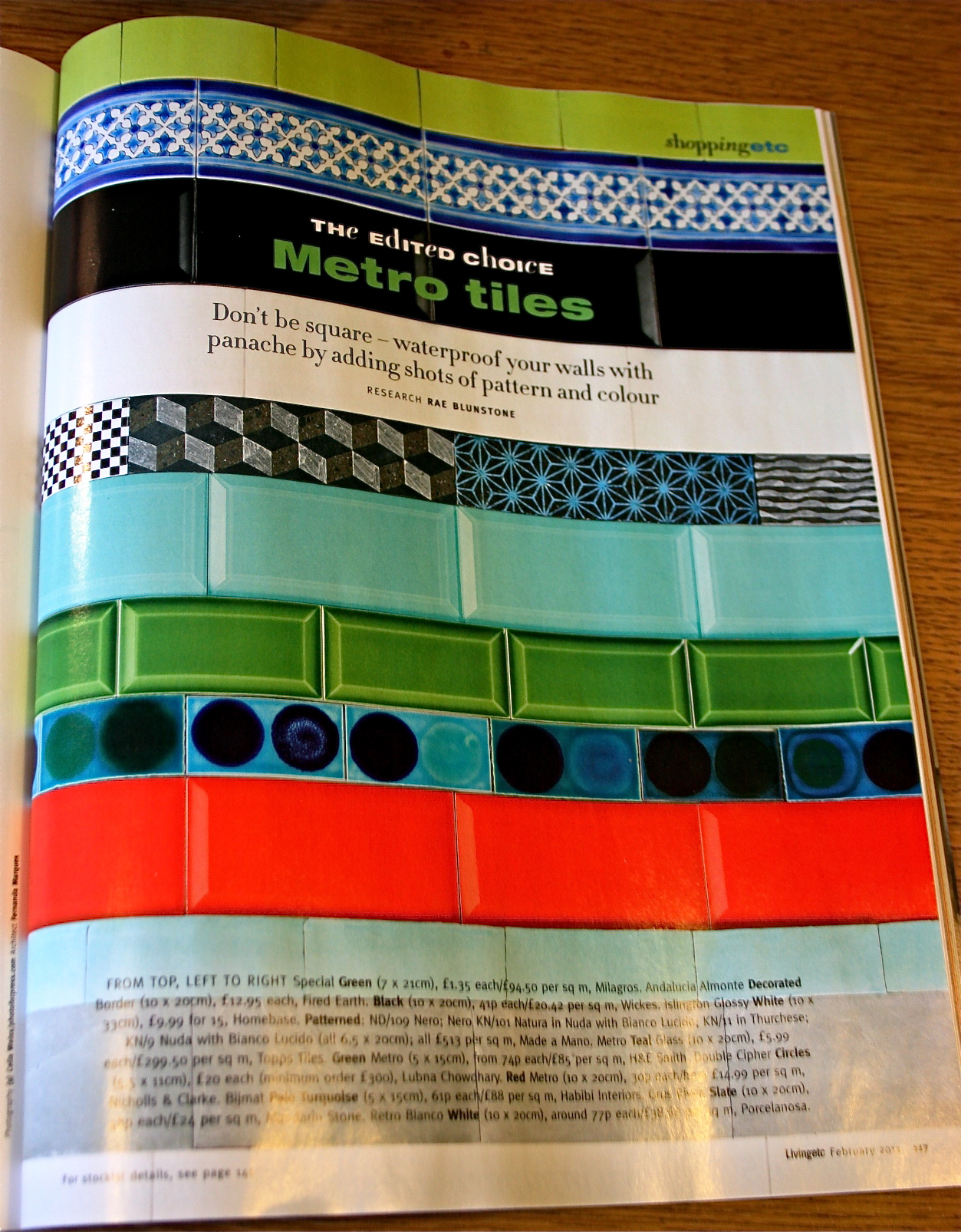 I opened up my Jan 2011 Living Etc this morning to find this page boldly stating it’s wares, not for the faint hearted these metro tiles….