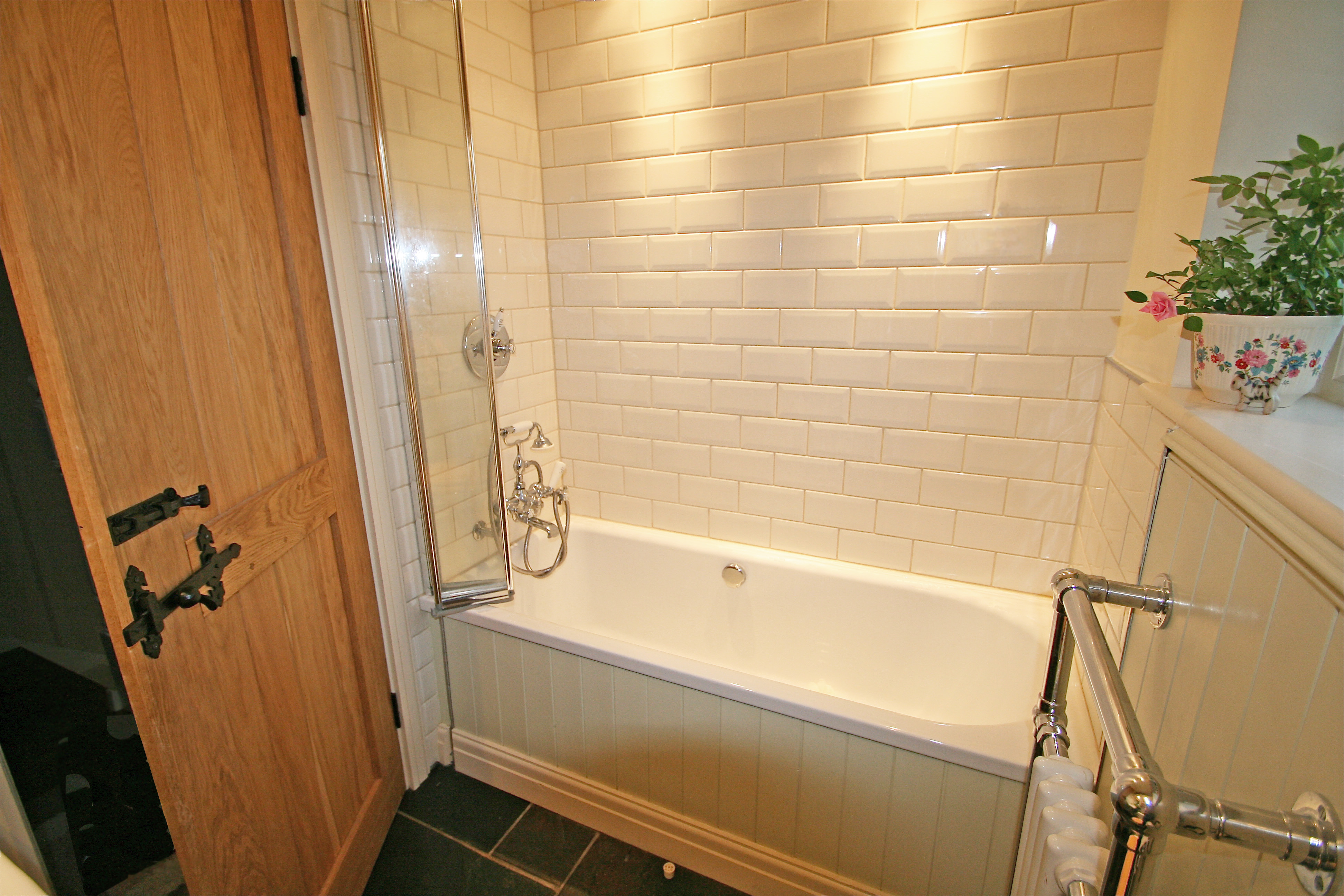 Below we used them at a property where I was just helping out so I don’t have finished images, but you get the idea what they look like behind a roll top bath with a limestone floor: