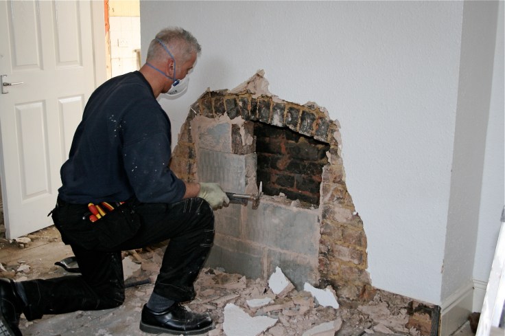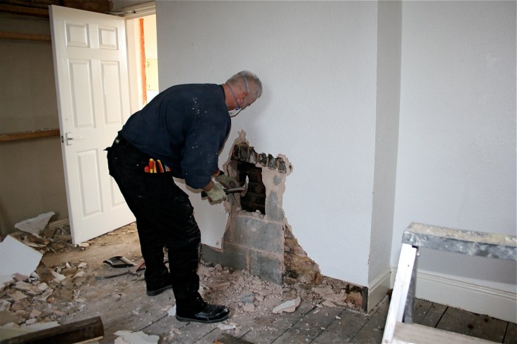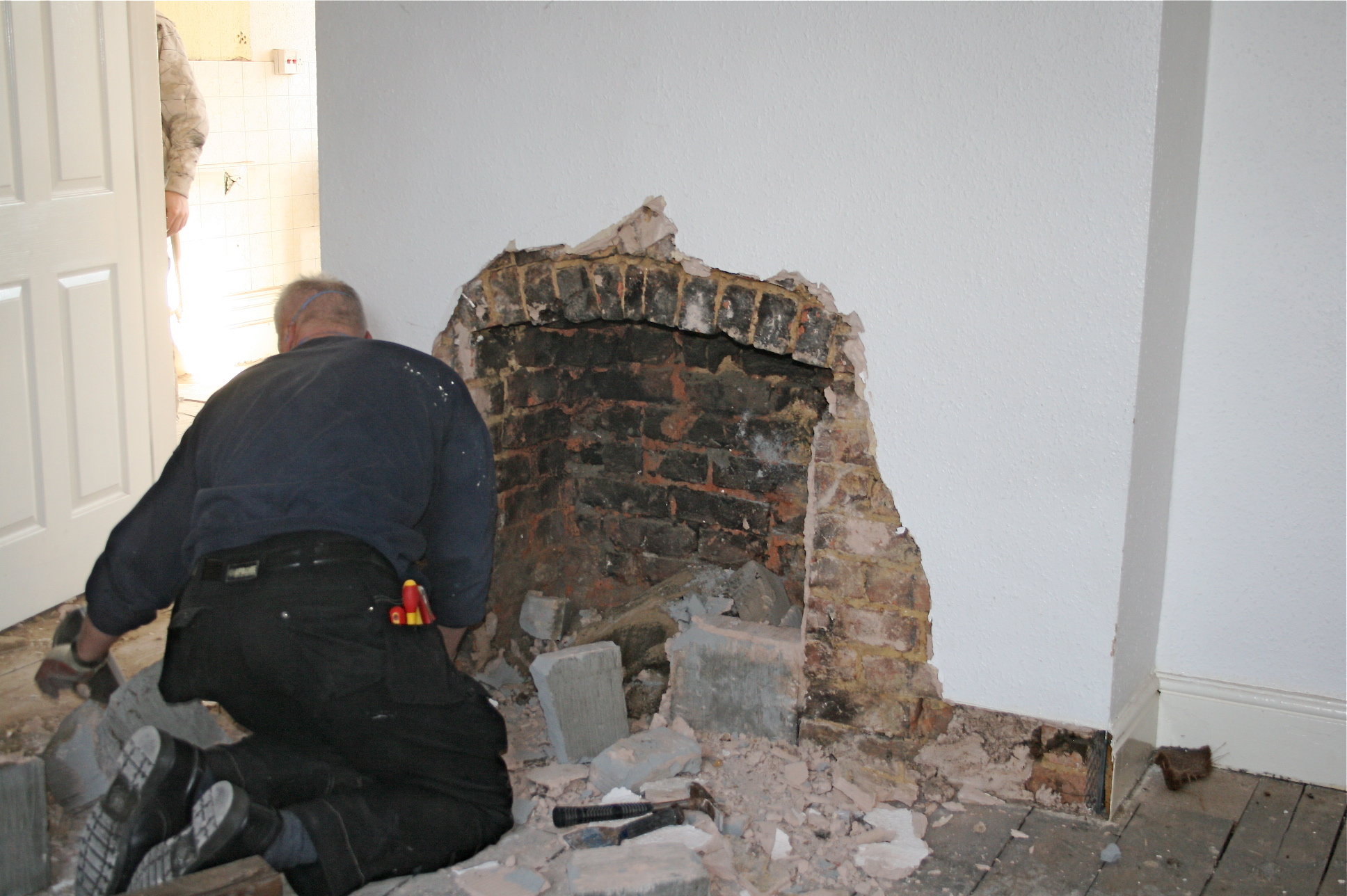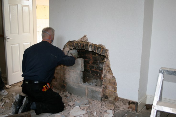 Let’s get it opened up, luckily it’s only been bricked up with breeze block and not a great pile of bricks and cement: