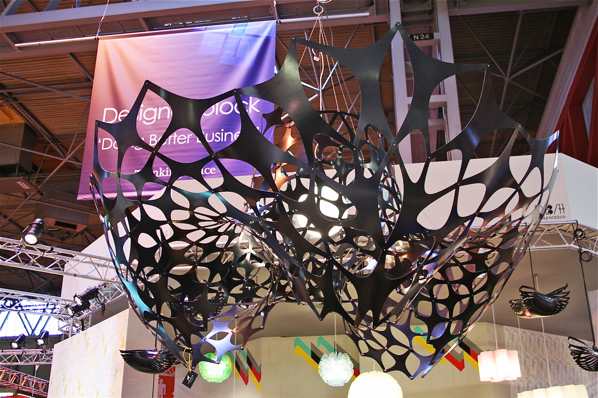 Not so much a light as a room filler, this carbon fibre contemporary chandelier is about 2m wide and was a hit with commercial visitors: