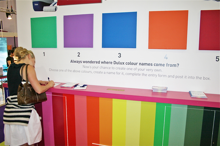 …to Dulux’s rainbow stand where I diligently entered their competition to name a new colour – there’s me plumping for No 2, I better win!