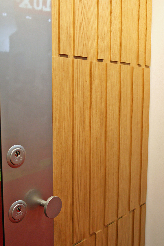 Also loving these doors. There’s a trend towards 3D at the moment, we were talking about it on our Topps Tiles twitter Q&A last week, lots of new tiles in slate and natural stone are designed with this effect, but it was the first time I’d see a full sized door with a relief pattern in the timber. Gorgeous…. Moregeous in fact!