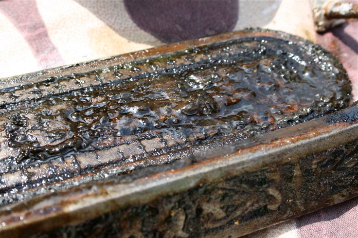 Slowly the paint stripper lifted away all the undercoat and grime…..