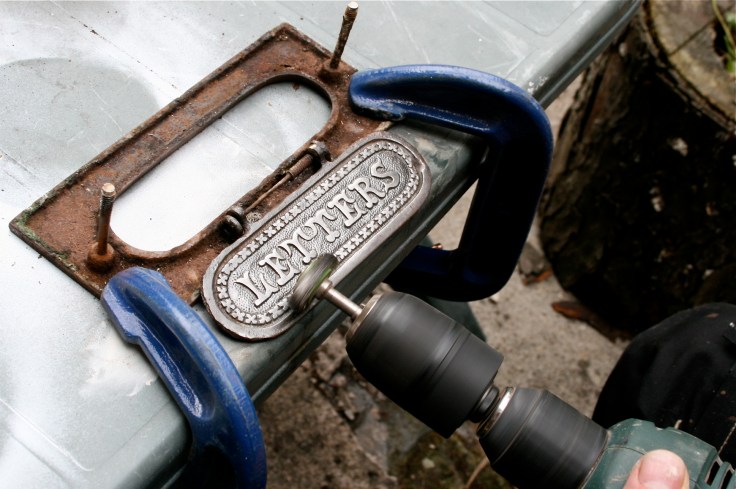 But even when the stripper had worked his caustic magic, more work was needed to polish our little letterbox up to her original shine. Mr M got to work with the drill and a wire brush attachment: