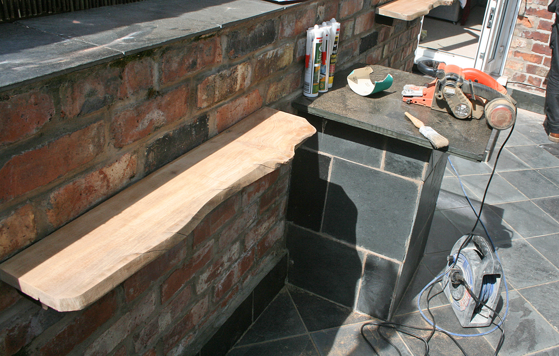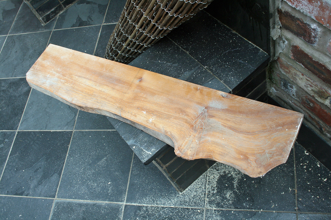 After a good going over with my new belt sander, I popped it on a thick baton on the wall next to the bbq table: