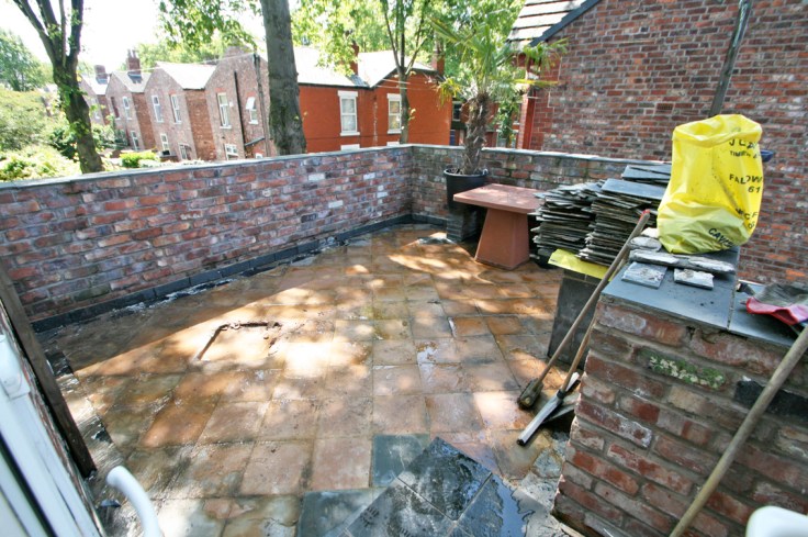 First we took up all the old tiles to find (not unexpectedly) that the whole area was sodden: