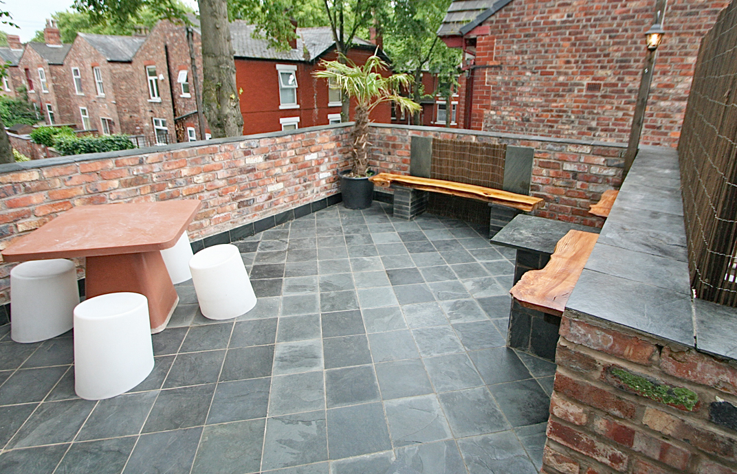 We had some willow screening left over from the other (unseen) section of the terrace, so used this against the brick wall so it would be more comfortable to lean back on. I’m finally really pleased with this terrace which has been problematic since it’s construction. The tiling wasn’t done well initially and has now been completely replaced.
