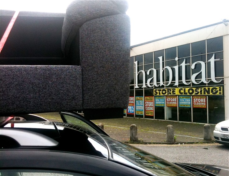 Like the suite below, for massive example. How fabulous that within a couple of hours it was recycled to someone who really appreciated it and a quick visit down to the closing Wythenshawe Habitat resulted in it being replaced  with a lush corner sofa which the new tenants can snuffle down into on a Friday night 🙂 I like to think that this image of it behind my flourishing cherry tomatoes is what made it fly off to a new owner!