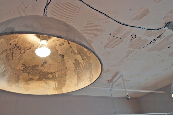 Some suitably distressed lighting was called for as Sue wanted the industrial look of the ceiling carried through to the lighting. We were re-using the original track lighting but moving it slightly and sourcing new chain and cabling, and also re-using the three spot light over the desk. The new central pendants therefore needed to be circular, not too perfect looking, larger than 500mm wide, reasonably priced, blend with the ceiling but still look sexy enough for a designer ladies boutique. No mean feat that…. *gets stiff gin & sits in front of Google*