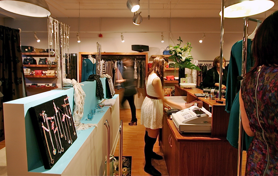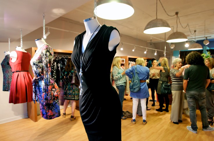 The shop was buzzing with activity all night, lots of trying on, lots of wine drinking, lots of purchases. It was nice being around and watching people enjoy the space for the first time it was used, next time we renovate a house for a client, I’ll have to ask them if I can move in for few days to see how they live in it. As if! It was good to be able to re-use the existing track lights to the left and right of the shop, with the addition of 4 new circular pendants illuminating the central area down the middle.
