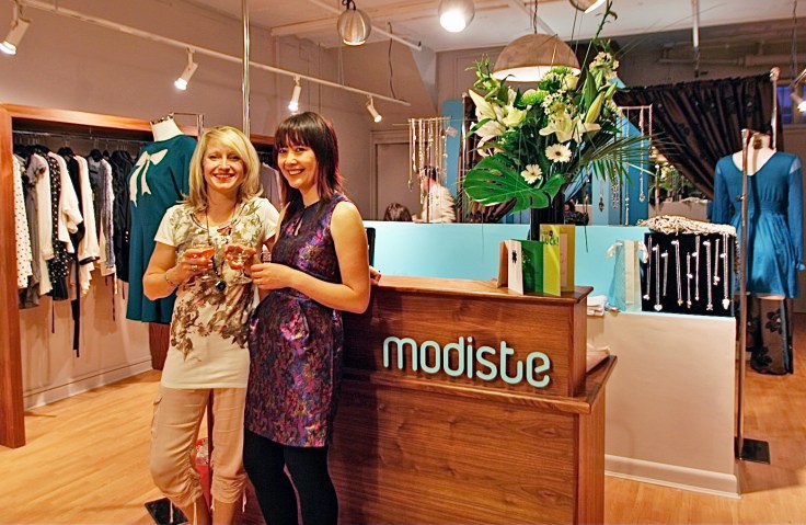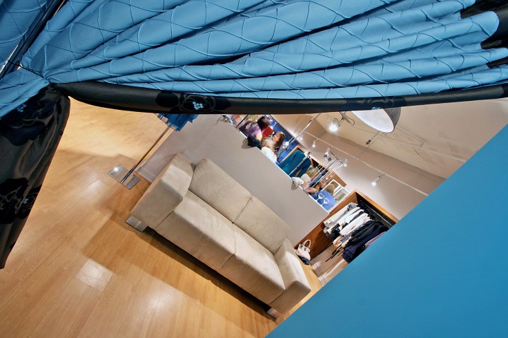 Our work was done! The old shop false ceiling had come down (see here) as had the dividing wall, new changing rooms had been built along with a dividing wall between sofa and desk, the new lighting and sockets were fitted, everywhere was freshly painted in a taupe shade called Lauren and all the walnut cabinets were in place with matching shelves hung on the walls. Client Sue organised her fizz in the fridge, steamed stock on the rails and polished the floor – all in time for the 25 August…. phewf 🙂 I know that I’d said to Sue that it could be done in two weeks but even I knew how tight the schedule had been. Team Moregeous played a blinder and worked hard to complete within the time frame, bless ’em.