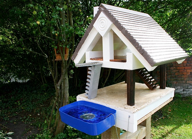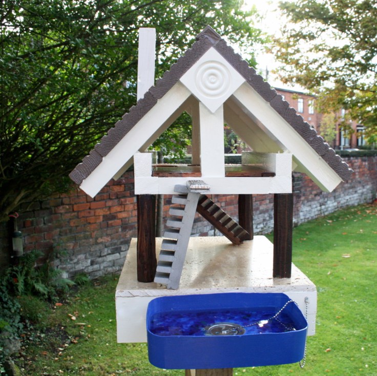 Something had to be done to elevate the existing birdhouse and get all the seeds well away from ground level. I’m all for upcycling but this truly was a makeover and a half, with little remaining of the original house able and sturdy enough to be used. I tasked Mr M with creating a new birdhouse and he disappeared into the outside shed, happy as Larry with a saw and some bits of left-over timber.