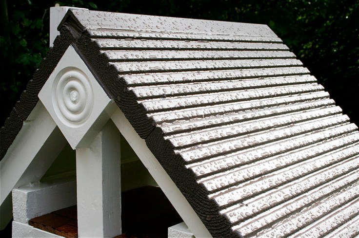 Before we knew it we had a Moregeous Mansion on our hands and after a weekend of dabbling, painting, glueing, staining and fancifying, here’s what we’ve come up with – the birdhouse to end all birdhouses and our very first new build together (tee hee, got you lot on Facebook, didn’t I?)……