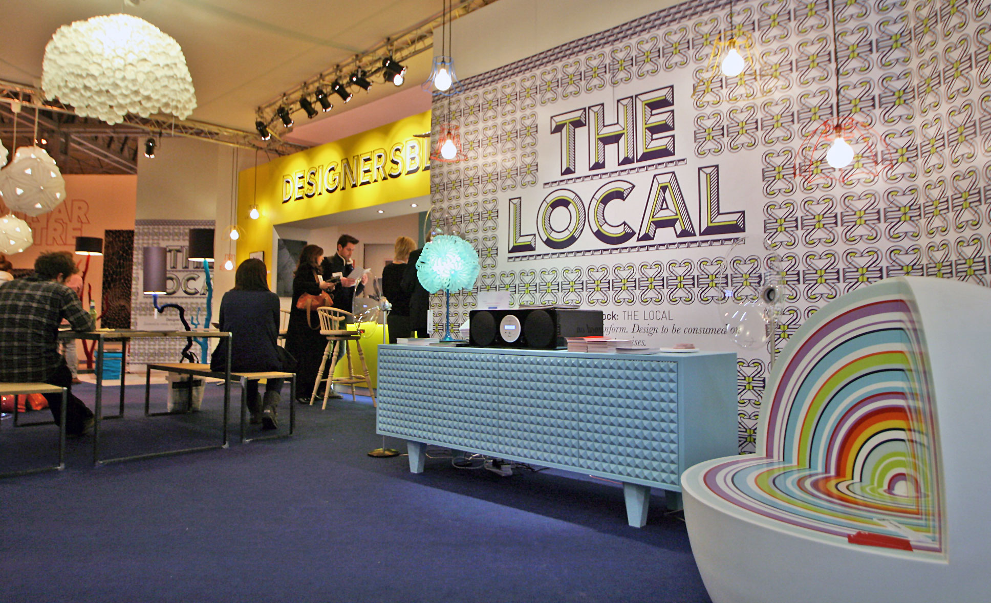 By far and away the most inspirational area at Interiors UK 2012 was the Designersblock curated and organised ‘Design Village’, a wonderful blend of the exciting and the eclectic all staged in and around it’s very own village pub ‘The Local’. It was a magnet for trade exhibitors and visitors alike, feeling rather like the coolest drinking establishment you’d ever been in by virtue of its cutting edge interiors. It even had its own beer mats, one of which now has pride of place on the Moregeous fridge 🙂