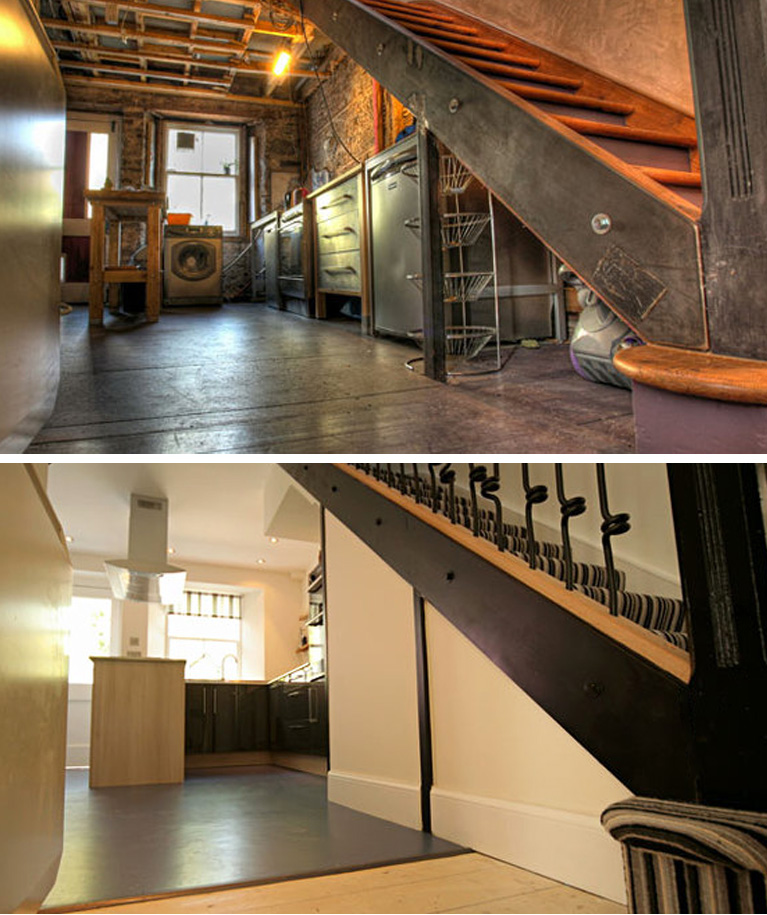 The owners didn’t want a twee country kitchen, the ones they’d seen on-line and liked were super slick and contemporary but with fabulously unexpected twists, usually incorporating natural materials. After years of cooking in a dusty, devastated space , they wanted somewhere easy to clean, without nooks, crannies and dirt traps. Amongst the other do’s and don’ts were no wall units, a small fridge (less waste), no vinyl and no microwave.