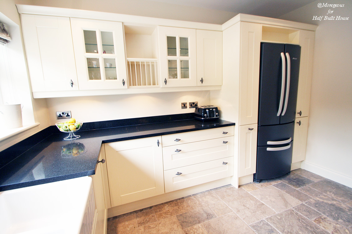 Modern families require modern appliances and the graphite coloured Quadrio fridge freezer is easily large enough for this growing family. Remember with American style freezers that they are deeper than your average fridge freezer so allow for deeper end panels and a top box. Speak with your kitchen supplier about which F/F  you’re opting for to allow them to design around it.