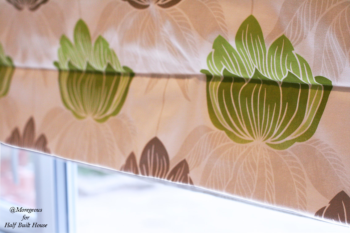 A roman instead of the usual roller blind made by the lovely Kay (who delivers nationally!) adds luxury. The fabric is called Lalique Lime and the design reflects French glassware.