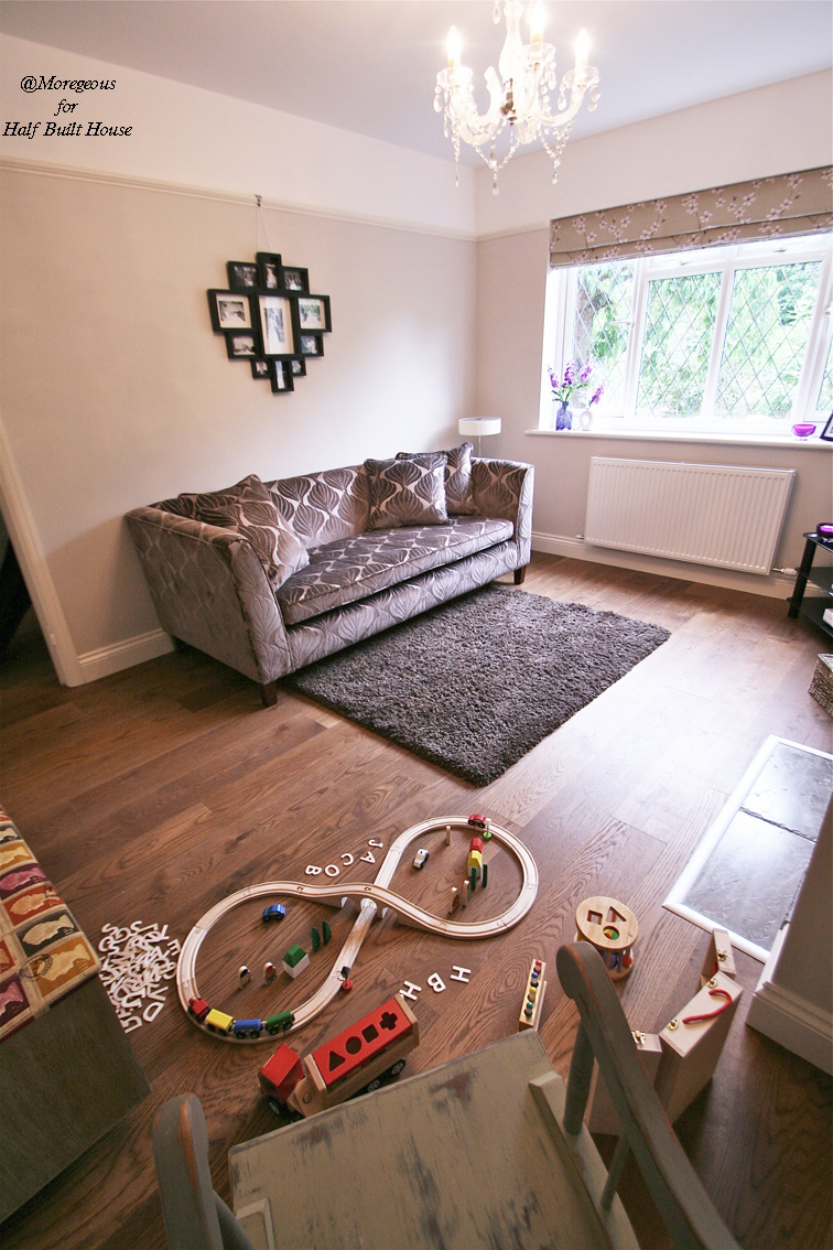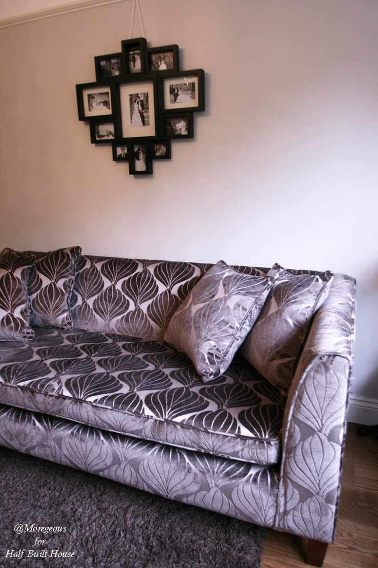 I really wanted to provide this young family with a fantastic sofa they could all relax on but couldn’t find one large enough or luxury enough. Luckily Glyn Smallwood & Prestigious Textiles came to the rescue. Glyn is an expert upholsterer who also makes his own furniture, or that of his client’s design at a very reasonable cost. I chose a gorgeous and hard wearing sofa fabric from Pretigious’s Élysée range, sent Glyn an image of the sofa style I wanted, he made the sofa, then covered it with our fabric. Costs vary according to what fabric you choose and the size of the sofa but how fabulous to have a complete one-off in your home – Made In Britain – brilliant!