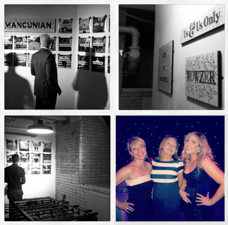 Suited and booted a week later for the glam Diary Party at the plush Lowry Hotel (thanks Dianne!) before heading up to the subterranean creative space 2022NQ for friend Amanda McCrann’s Smashed exhibition. Mr M had been one of the ‘Mancunians’ photographed, quite by chance as he wandered up Burton Rd to get a sarnie for his lunch. I was looking forward to seeing my MancMan up in black & white but he was up on the wall at Love 2 Eat cafe instead – must call in!