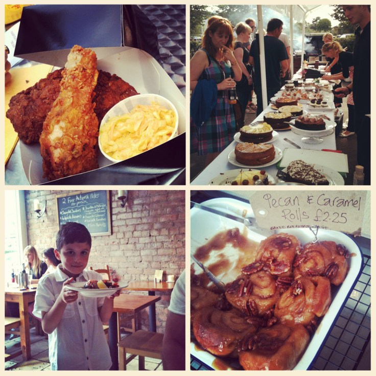 Apart from planting some beautiful Bud violas in all shades of purple to ensure autumnal flowering in the Moregeous garden, we’ve had a packed, artistic and delicious start to the new season. It started with Burton Road’s end of summer festival West Fest 2012, organised by Didsbury Life and enjoyed by hundreds of locals, including us! The sun (remember it? now long gone!) shone and lots of cake & cocktails were the order of the day. Rhubarb’s incredibly crunchy fried chicken knocked spots off the long past it’s heyday Kentucky and our Sunday seafood spectacular was served by the cutest waiter this side of the Adriatic, Luca in Azzurro, working hard and saving all his tips!