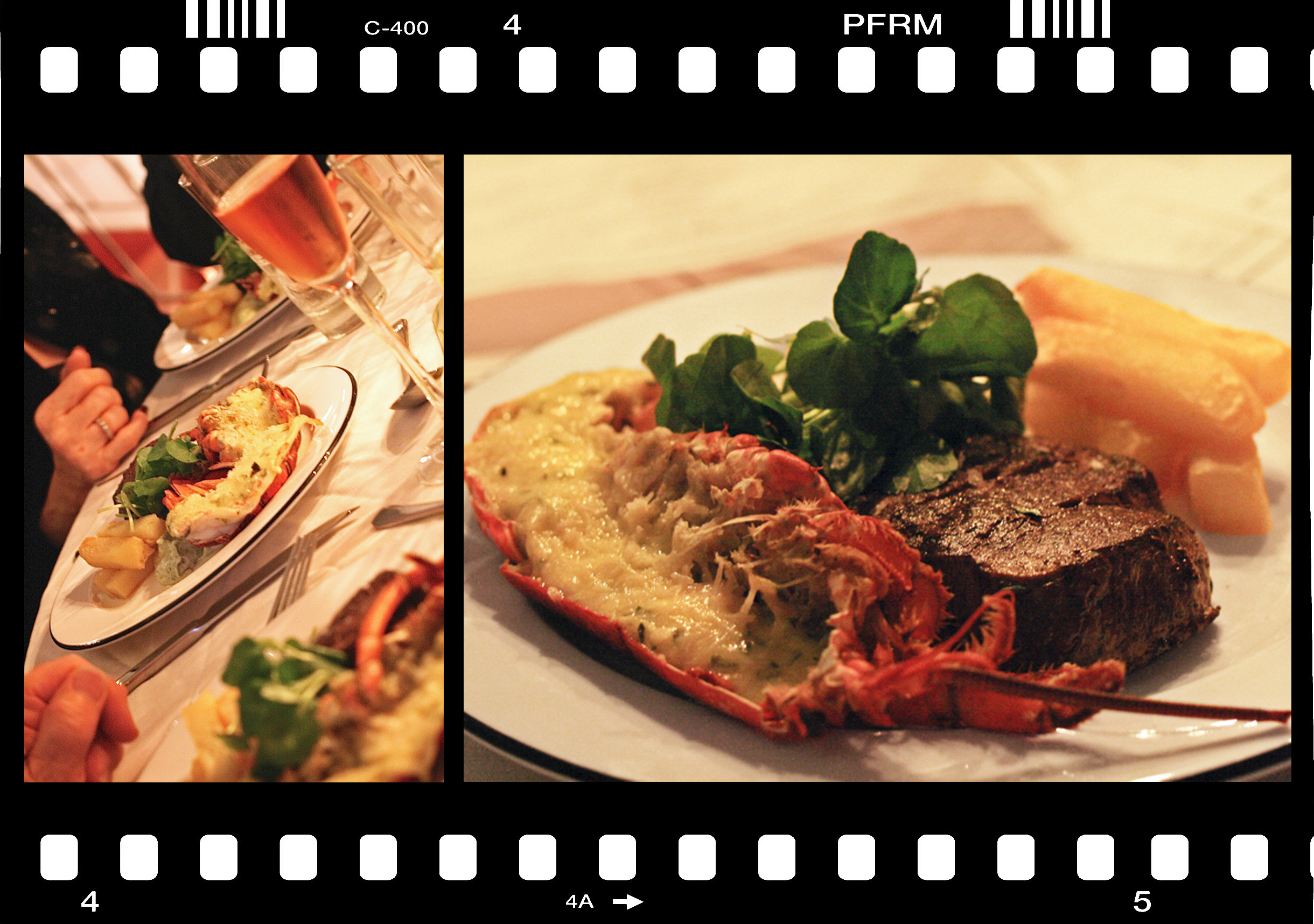 A rich lobster bisque with a centred trio of queen scallops followed next, equally lip smacking and accompanied by a Moet Imperial.