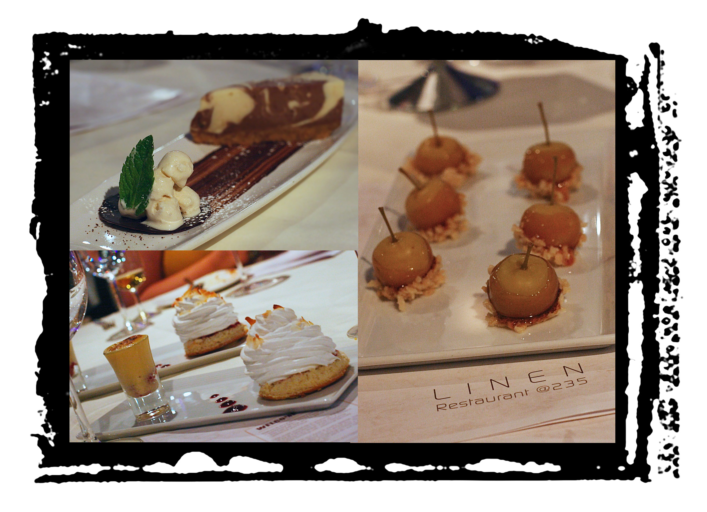 It reads like we ate a mountain of food but don’t forget each of the pictured dishes was shared between 3! Actually I’m just making excuses for the fact that we even had SPACE for more, but thank heavens we did as the kitchen absolutely shines at dessert, seriously it’s worth nipping in just for a pudding. My most favourite restaurant pud has long been the sticky toffee pudding at The Lime Tree, but I think it’s finally been toppled by the quite unbelievable deliciousness of Linen’s Toffee Apple Crème Brûlée with miniature apples dipped in popping candy with cinnamon shortbread. The crème brûlée was a dream, not eggy or synthetic or gloopy or solid like so many can be but soft and creamy consistency with a lightly crunchy top, the shortbread fab and the popping apple worth pushing a small child out of the way for. Not that there were any there, but if there had been, I would have 😉