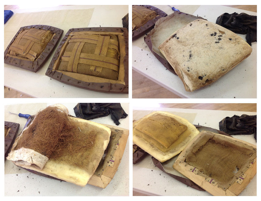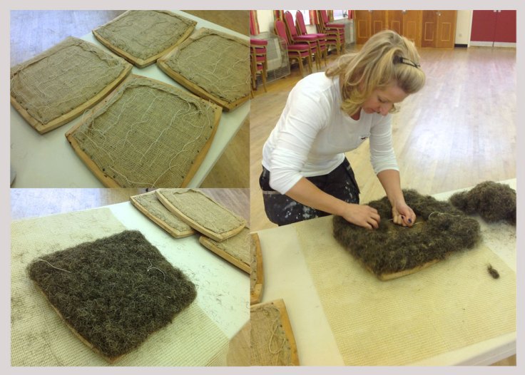 And so to putting them back together. I’ve learnt how re-web the chair bases, do slip knots & bridal ties and the quite hard-on-the-hands process of stuffing the chair with hair to create an even, comfortable pad. It’s brilliant!