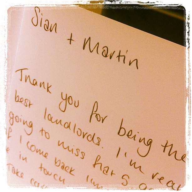 Only, it’s not always like that. As this lovely Lovely LOVELY thank you card I opened today proved. It warmed the cockles of my heart on this cold March afternoon and will make me smile all day. It made me proud of what we try to do and the homes we try to create for our tenants. It made it worth it 🙂