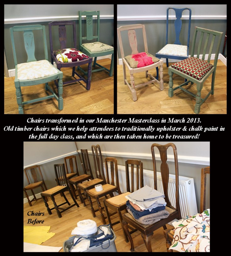 The whole day was packed full of information, questions and hands on activity. What I loved was that everyone opted for different paint colours and fabrics (some people brought their own) to reflect their differing interior design styles and homes, so all the chairs looked so very different as they progressed through the Masterclass.