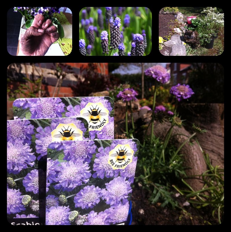 Another beautiful Spring weekend meant some more external taming of the gardens at what will be Moregeous Mansions. A big garden needs an awful lot of tlc so has been a work in progress for years. Much of the planting is designed to attract bees and butterflies and this is SO easy now clever retailers have taken to using whopping great BEE FRIENDLY labelling, like the ones at the lovely garden centre in Posh Prestbury I popped into this weekend. Newly planted just a few hours later were some pretty but hardy Scabious Butterfly Blue and two colour Muscari pictured above, and also a shrub I’d not seen at my local plant haunts before, Spiraea Arguta or Bridal Wreath. How pretty is it? I think it gives a gorgeous backdrop to purple Snake’s Head Fritillary and vivid green parsley for summer cooking 🙂